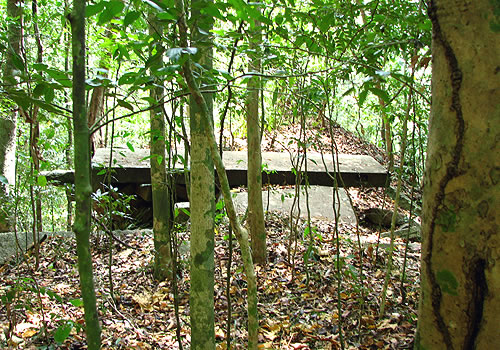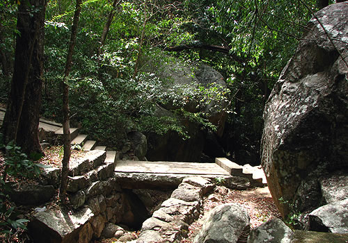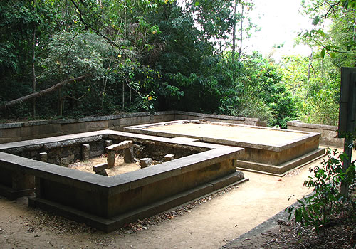 are characteristic of Ritigala and similar forest monasteries. A stone bridge